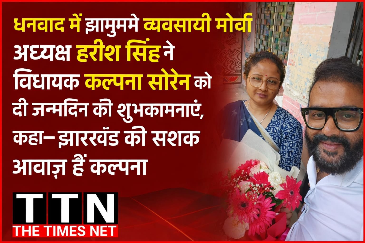 धनबाद में झामुमो व्यवसायी मोर्चा अध्यक्ष हरीश सिंह ने विधायक कल्पना सोरेन को दी जन्मदिन की शुभकामनाएँ, कहा— झारखंड की सशक्त आवाज़ हैं कल्पना