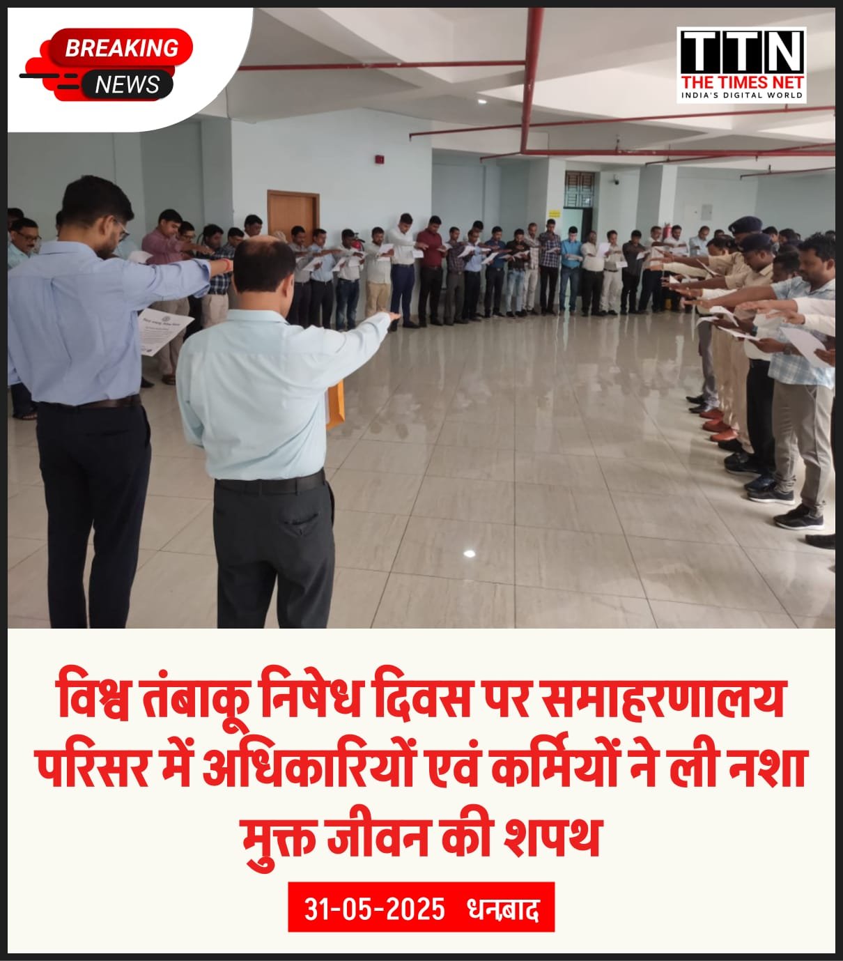 शपथ ग्रहण के दौरान सभी उपस्थित कर्मियों ने भविष्य में तंबाकू का सेवन नहीं करने और समाज में अन्य लोगों को भी इसके दुष्परिणामों के प्रति जागरूक करने का संकल्प दोहराया। कार्यक्रम का उद्देश्य था कि एक स्वस्थ, सशक्त और तंबाकू मुक्त समाज की नींव रखी जाए।