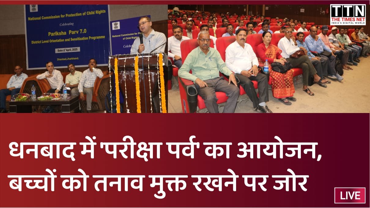 धनबाद, 9 अप्रैल — राष्ट्रीय बाल अधिकार संरक्षण आयोग (NCPCR) के निर्देश पर मंगलवार को जिला शिक्षा विभाग की ओर से न्यू टाउन हॉल में ‘परीक्षा पर्व’ का आयोजन किया गया। इस विशेष कार्यक्रम का उद्देश्य छात्रों को परीक्षा के तनाव से मुक्त रखने के उपायों को साझा करना और शिक्षकों तथा अभिभावकों को इस दिशा में जागरूक करना था।